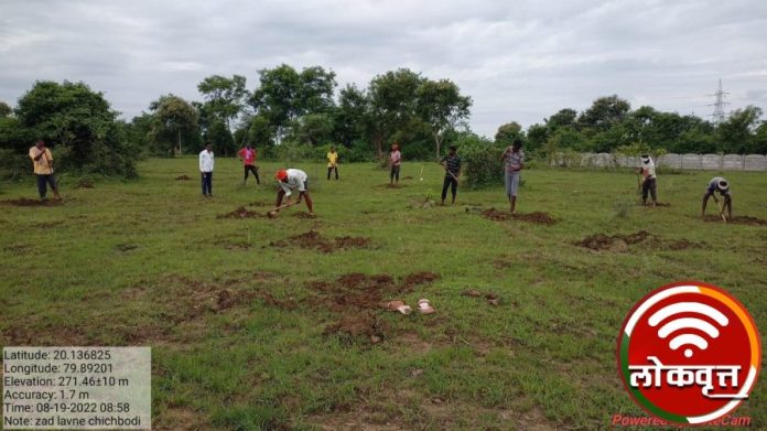 सावली दि २३ ऑगस्ट :- सावली तालुक्यातील चीचबोडी ग्रामपंचायत चे सरपंच सतीश नंदगिरवार या नी गावाला विकसित करण्यासाठी चंग बांधलेला असून मनरेगा योजना अंतर्गत येथील गोरखनाथ मंदिर व स्मशानभूमी परिसरात दोन हजार वृक्ष लागवड करीत असून सदर वृक्ष चंद्रपूर येथील रोप वाटिकेतील आणलेली असून यात आंबा फणस जांभूळ जाम कवट कडूनिंब चिंच इत्यादी प्रकारच्या जातीचे वृक्ष लावली जात आहे.