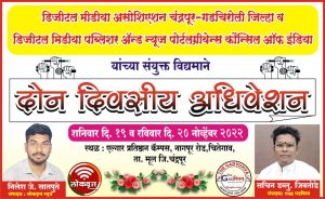 यावेळी डिजिटल मीडिया असोसिएशनचे अध्यक्ष जितेंद्र चोरडिया, कार्याध्यक्ष विजय सिद्धावार, जितेंद्र जोगड, राजू बिट्टुरवार, दिनेश एकवणकर आणि सर्व सदस्य उपस्थित राहणार आहेत. या अधिवेशनात चंद्रपूर, नागपूर, गडचिरोली जिल्ह्यातील ४५ नोंदणीकृत विविध माध्यम प्रतिनिधी सहभागी होणार आहेत. हे अधिवेशन निवासी असून, नव पत्रकारिता, माहिती व तंत्रज्ञान यावर विशेष प्रशिक्षण होणार आहे.