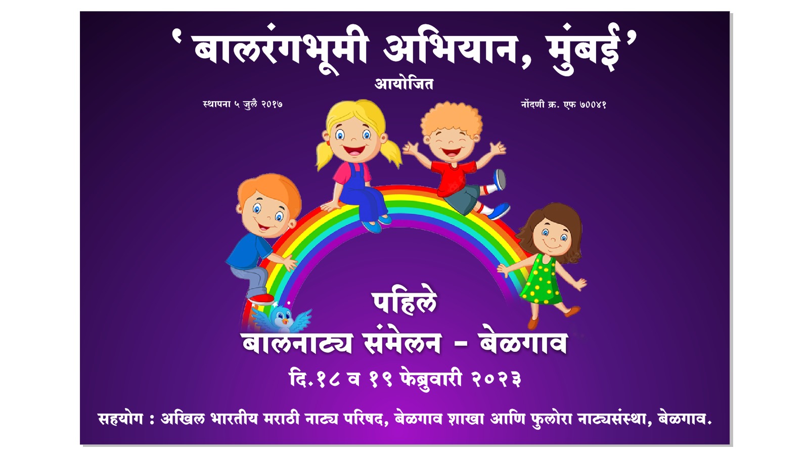 बेळगाव दि. ८ फेब्रुवारी:- ‘बालरंगभूमी अभियान, मुंबई’ या संस्थेतर्फे १८ आणि १९ फेब्रुवारी २०२३ रोजी बेळगावच्या ‘संत मीरा हायस्कूल’मध्ये ‘पहिल्या बालनाट्य संमेलनाचे’ आयोजन करण्यात आले आहे. ‘अखिल भारतीय मराठी नाट्य परिषद शाखा बेळगाव’ आणि ‘फुलोरा बेळगाव’ या संस्थांचे सहकार्य संमेलनाला लाभले आहे. सदर संमेलनासाठी बेळगाव मधील २५ ते ३० शाळांमधील प्रत्येकी १५ मुले, याप्रमाणे एकूण ३०० मुलांचा सहभाग असणार आहे. या संमेलनाला लोकप्रिय अभिनेते सुबोध भावे, लोकप्रिय अभिनेत्री सई लोकूर, अभिनेते प्रसाद पंडित, संमेलनाध्यक्षा माननीय मीना नाईक यांसह अनेक दिग्गज उपस्थित राहणार असल्याचे बालरंगभूमी अभियान, मुंबईच्या अध्यक्षा वीणा लोकूर यांनी कळविले आहे.