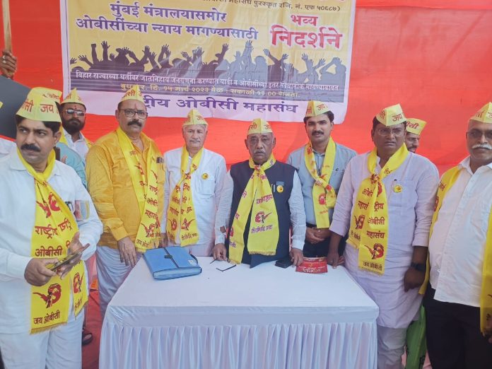 मुंबई १५ मार्च : ओबीसी समाजाच्या राज्य सरकार संबधित विविध संवैधानिक मागण्यांना घेवून आझाद मैदान येथे राष्ट्रीय ओबीसी महासंघाचे राष्ट्रीय अध्यक्ष डॉ बबनराव तायवाडे,महासचिव सचिन राजूरकर, समनव्यक डॉ अशोक जीवतोडे, प्रदेशाध्यक्ष प्रकाश भांगरथ यांच्या नेतत्वाखालील आझाद मैदान मुंबईत येथ निदर्शने करण्यात आली. बिहार राज्याच्या धरतीवर महाराष्ट्र राज्यातही जातनिहाय जनगणना त्वरित करण्यात यावी, राज्यात इतर राज्याप्रमाणे जुनी पेंशन योजना त्वरित लागू करण्यात यावी, मराठा समाजाचा समावेश ओबीसी संवर्गात करण्यात येऊ नये, म्हाडा मार्फत बांधून देण्यात येणारी घरकुल योजना ओबीसी संवर्गासाठी त्वरित लागू करण्यात यावी, ओबीसी संवर्गातील विद्यार्थ्यांना विदेशातील उच्च शिक्षणाकरिता शिष्यवृत्ती योजनेस पात्र ठरविण्याकरिता लावण्यात आलेली ८ लाख रुपये उत्पन्न मर्यादा रद्द करून नॅान क्रमिलेअर प्रमाणपत्र असणाऱ्या सर्व विद्यार्थ्यांना पात्र ठरविण्यात यावे, गुणवंत मुला-मुलींना परदेशातील उच्च शिक्षणासाठी देण्यात येणारी शिष्यवृत्ती विद्यार्थ्यांची संख्या ५० वरून वाढवून ती १०० विद्यार्थी इतकी करण्यात यावी, ओबीसी समाजातील विद्यार्थ्यांसाठी स्वतंत्र वसतीगृहे त्वरित सुरु करण्यात यावे, एससी व एसटी विद्यार्थ्यांना लागू असलेली भारतरत्न डॉ.बाबासाहेब आंबेडकर स्वाधार योजना ही सर्व ओबीसी विद्यार्थ्यांना त्वरित लागू करण्यात यावी, महाज्योती या संस्थेकरिता एक हजार कोटी रुपयाची तरतूद लवकरात लवकर करून ही योजना कार्यान्विंत करण्यात यावी व महाज्योती तर्फे इतर मागास प्रवर्ग, विमुक्त जाती, भटक्या जमाती व विशेष मागास प्रवर्ग या प्रवर्गातील विद्यार्थ्यांसाठी स्पर्धा परीक्षा प्रशिक्षण केंद्रे राज्यातील प्रत्येक जिल्ह्याच्या ठिकाणी सुरु करण्यात यावे, सामाजिक न्याय विभागातील परिपत्रकानुसार ही प्रशिक्षण केंद्रे इतर मागास प्रवर्ग, विमुक्त जाती, भटक्या जमाती व विशेष मागास प्रवर्ग या प्रवर्गातील संस्था चालकांनाच चालविण्यास देण्यात यावी, ओबीसी आर्थिक विकास महामंडळाला एक हजार कोटी रुपयाची तरतूद करण्यात यावी व या महामंडळाच्या सर्व योजना त्वरित सुरु करण्यात याव्यात, इतर मागास प्रवर्ग, विमुक्त जाती, भटक्या जमाती व विशेष मागास प्रवर्ग या प्रवर्गातील रिक्त पदांचा अनुशेष त्वरित भरण्यात यावा, इतर मागास प्रवर्ग, विमुक्त जाती, भटक्या जमाती व विशेष मागास प्रवर्ग या प्रवर्गातील शेतकरी, शेतमजुरांना वयाच्या ६० व्या वर्षानंतर पेंशन योजना लागू करण्यात यावी, बारा बलुतेदारांच्या आर्थिक विकासासाठी राष्ट्रसंत गाडगेबाबा यांच्या नावाने स्वतंत्र आर्थिक विकास महामंडळ स्थापन कर