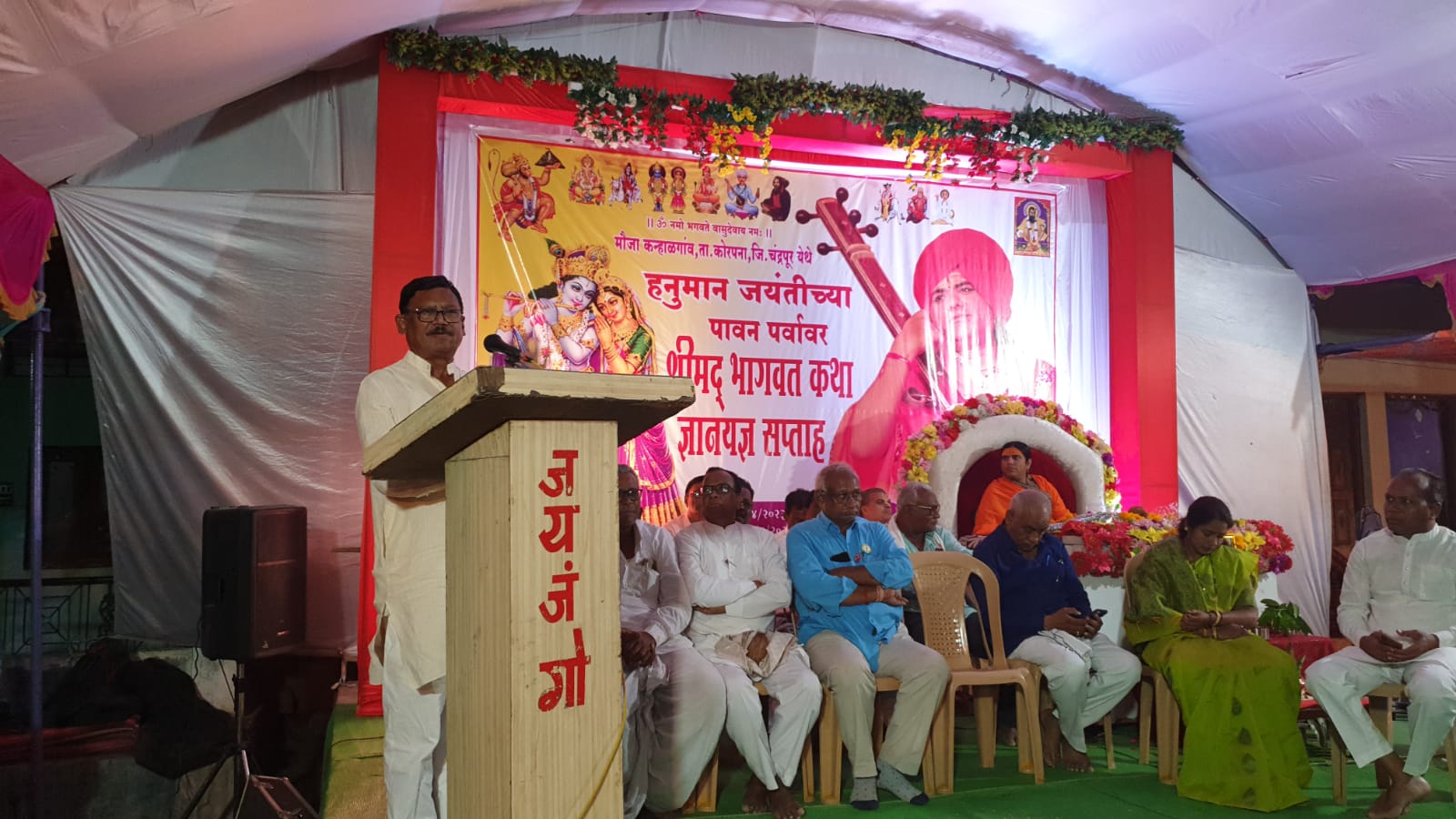 कोरपना ८ एप्रिल:- तालुक्यातील मौजा कान्हाळगाव येते हनुमान जयंतीच्या पावन पर्ववर श्रीभाद भागवत कथा सप्ताहाचे आयोजन हनुमान देवस्थान कान्हाळगाव येते करण्यात आले या सप्तासाठी परमपूज्य बालयोगी आचार्य भागवत स्वामी गजेंद्र महाराज लहरी बाबा संस्थान श्रीक्षेत्र मदापूरे जिल्हा अकोला व त्यांचे सहकारी स्वामी नारायण दृद महाराज यांचे प्रवचन व कीर्तनाचे आयोजन करण्यात आले आहे या सप्ताहाचे उद्याटन लोकप्रिय आमदार सुभाषभाऊ धोटे यांच्या हस्ते करण्यात आले