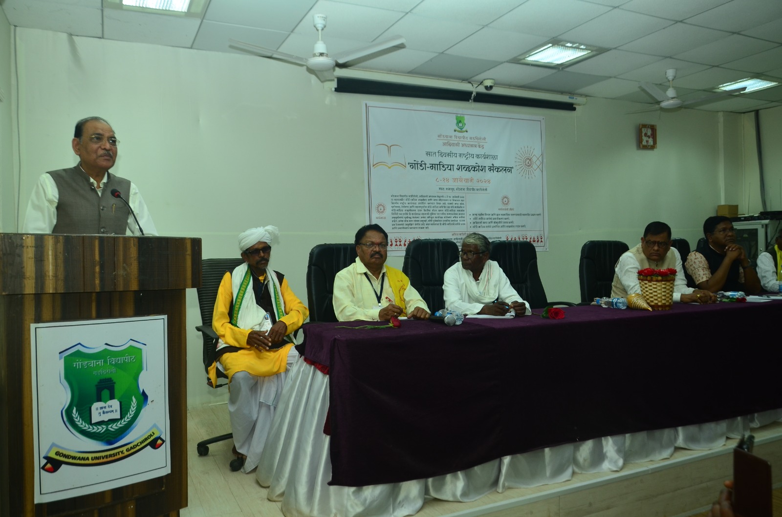 तेलंगाना, आंध्रप्रदेश, छत्तीसगड, ओरिसा व महाराष्ट्रात गोंडी भाषेतील अनेक शब्दकोश ख्रिश्चन मिशनरीज व गोंडी तज्ञांनी गोंडी भाषेत अनेक शब्दकोश तयार केले आहेत, त्या सर्वांना एकत्रित करून सेन्ट्रल इन्स्टिट्यूट ऑफ इंडियन लैंग्वेज मैसूर या संस्थेकडून शब्दकोश तयार करून त्याचे मानकीकरण करायचे आहे व त्या दृष्टीने प्रयत्न सुरु असून त्यावर गोंडवाना विद्यापीठ, गडचिरोली, सी.आय.आय.एल. मैसूर, पंडित रवी शंकर विद्यापीठ, रायपुर व समाजाची मालकी राहील असे मार्गदर्शन कार्यशाळेतील मार्गदर्शक सी.जी.नेट स्वरा छत्तीसगडचे समन्वयक सुब्रांशु चौधरी यांनी केले. कार्यक्रमाचे अध्यक्ष प्र-कुलगुरू डॉ. श्रीराम कावळे म्हणाले, गोंडी भाषेचे संरक्षण करणे व गोंडी भाषेतील परंपरागत ज्ञान टिकवून ठेवण्यासाठी गोडवाना विद्यापीठ, कटीबद्ध असून त्या दृष्टीने गोंडवाना विद्यापीठात गोंडी भाषा स्पिकिंग कोर्सचे सर्टिफिकेट कोर्स व डिप्लोमा कोर्स सुरु केले आहे. तसेच आदिवासी समाजाच्या विकासाच्या दृष्टीकोनातून विविध कार्यक्रम विद्यापीठांनी सुरु केले आहेत.असे ते म्हणाले.