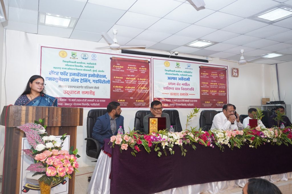 गोंडवाना विद्यापीठ,गडचिरोली व जिल्हा प्रशासनाच्या संयुक्त विद्यमाने अल्फा अकॅडमीमधील पहिल्या सत्रातील प्राविण्य प्राप्त विद्यार्थ्यांचा सत्कार कार्यक्रम तसेच सेंटर फॉर इनव्हेंशन, इनोव्हेशन, इनक्युबेशन अँड ट्रेनिंग या संकल्प प्रकल्पाअंतर्गत प्रशिक्षण सत्राच्या उद्घाटन समारोहाप्रसंगी त्या बोलत होत्या.