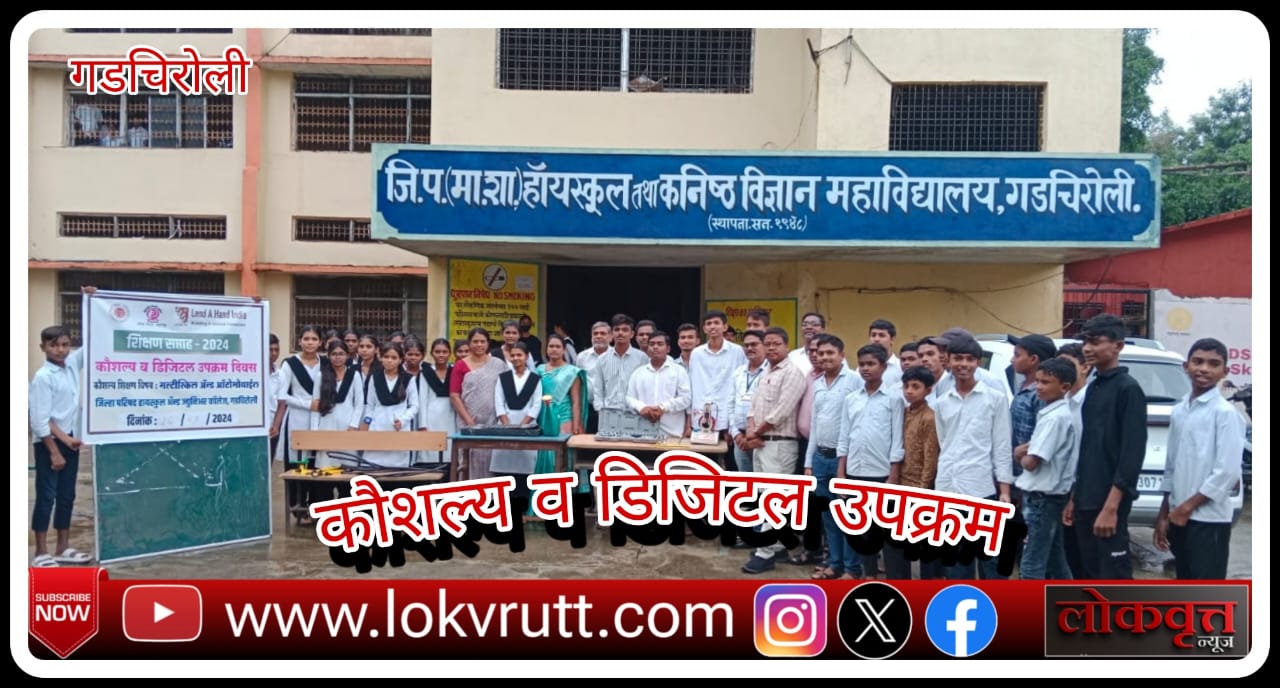 गडचिरोली दि.26 जुलै:- आज दिनांक 26 जुलै 2024 जिल्हा परिषद हायस्कूल तथा कनिष्ठ विज्ञान महाविद्यालय गडचिरोली येथे शिक्षण सप्ताह 2024 अंतर्गत कौशल्य व डिजिटल उपक्रम आयोजित करण्यात आले होते. शिक्षणाबद्दल जागृती व महत्व अधोरेखित करण्यासाठी शिक्षा सप्ताह हा कार्यक्रम या वर्षी भारतात साजरा करण्यात येत आहे. देशाच्या सर्वांगीण विकासात कौशल्य शिक्षणाची महत्वपूर्ण भूमिका अधोरेखित करण्यासाठी या आठवड्यात एक दिवस कौशल्य शिक्षणाबाबत विविध उपक्रम घ्यावयाचे आहे. या उपक्रमांतर्गत एक दिवस कौशल्य आणि डीजीटल शिक्षण यांतर्गत विविध उपक्रमाद्वारे २१ व्या शतकातील क्षमता व कौशल्य विद्यार्थ्यांमध्ये साध्य करून त्यांना सक्षम करू शकतो.
