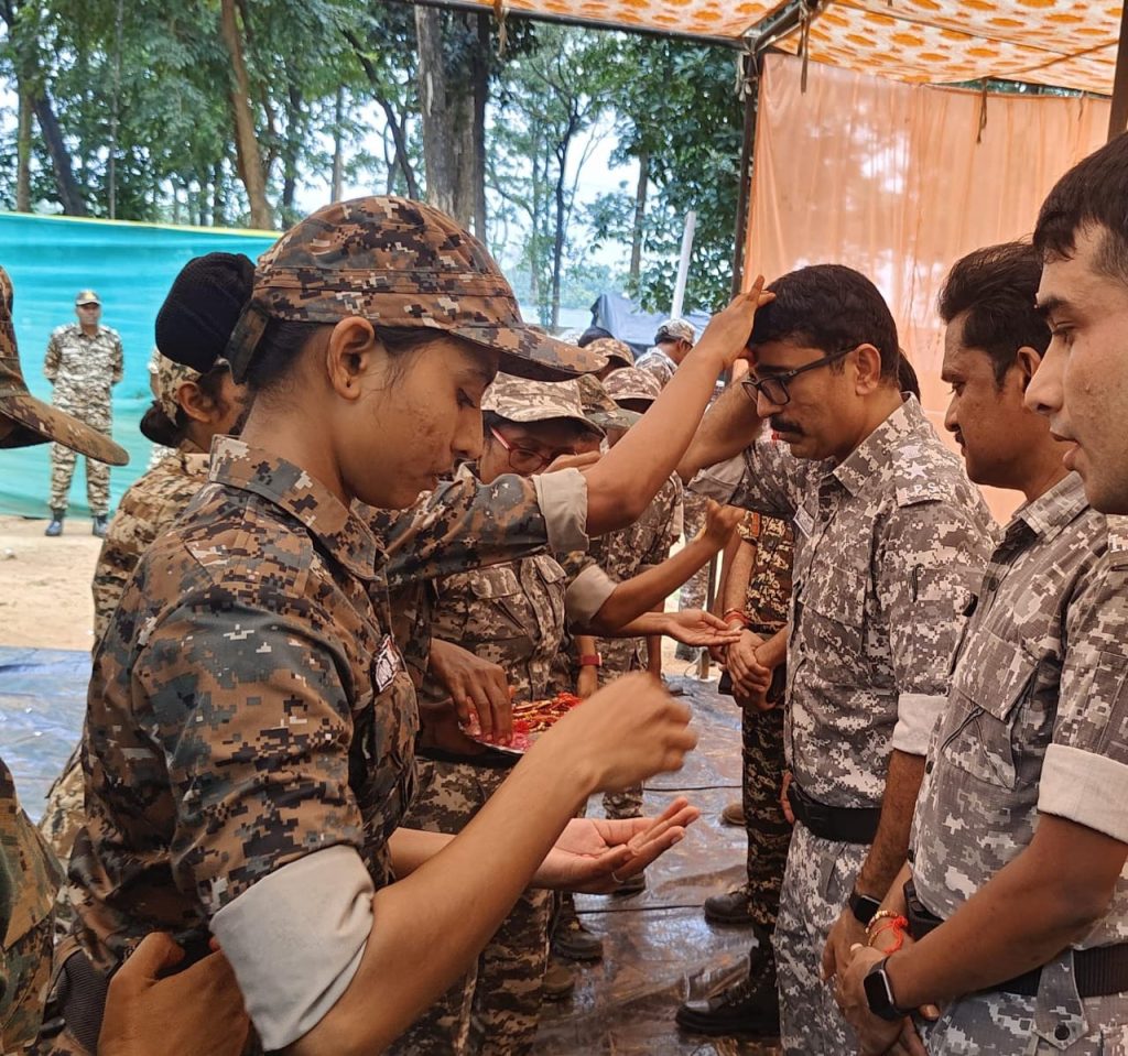 गडचिरोली दि१९ ऑगस्ट:- गडचिरोली जिल्हयातील माओवादग्रस्त व अतिदुर्गम, आदिवासी बहुल भाग म्हणुन ओळखले जाणा­या उपविभाग हेडरी अंतर्गत जानेवारी २०२४ रोजी नव्याने स्थापन करण्यात आलेल्या पोलीस मदत केंद्र गर्देवाडा येथे पोलीस अधीक्षक नीलोत्पल, अपर पोलीस अधीक्षक यतिश देशमुख व अपर पोलीस अधीक्षक एम रमेश यांनी महिला पोलीस अंमलदारांचे मनोबल वाढविण्यासाठी पोमकें गर्देवाडा येथे भेट देवुन रक्षाबंधनाचा सण साजरा केला. यावेळी पोमकें गर्देवाडा येथील महिला पोलीस अंमलदार व भगवंतराव आश्रमशाळा, गर्देवाडा येथील विद्यार्थींनींनी रक्षाबंधनाच्या उपक्रमात सहभाग घेवुन सर्व पोलीस अधिकारी व अंमलदार यांना राखी बांधली.