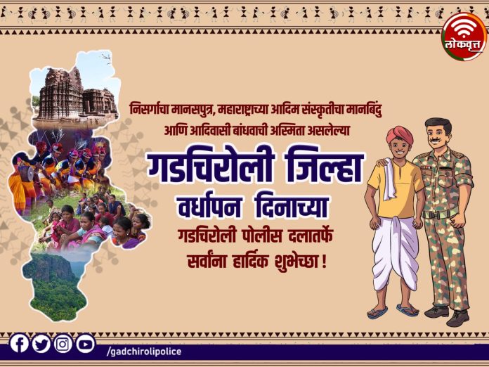 गडचिरोली पोलीस दलातर्फे गडचिरोली जिल्हा वाशी यांना गडचिरोली जिल्हा वर्धापन दिनाच्या हार्दिक शुभेच्छा