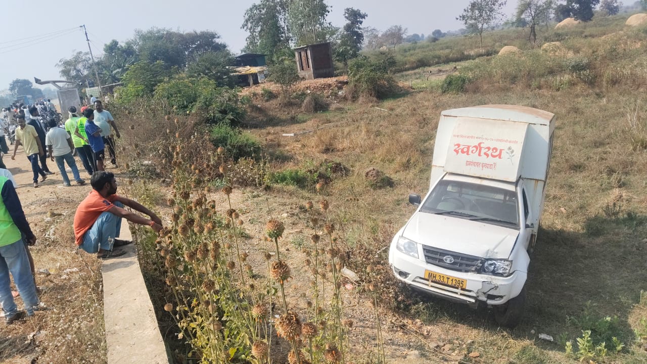 कुनघाडा रै हे गाव गडचिरोली चामोर्शी हायवेवरून 2 किमीअंतरावर आहे. कुनघाडा गावापासून वैनगंगा नदी अंदाजे ४ किमी अंतरावर आहे. ग्रामवासियांना नदीपर्यंत प्रेत नेण्यासाठी अडचण निर्माण होऊ नये म्हणून ग्रामपंचायतने स्वर्गरथाची व्यवस्था करण्यात आली आहे. कुनघाडा येथील प्रभाकर विठोबा वासेकर यांचे निधन झाल्याने एम एच ३३ टी १३९५ क्रमांकाचे स्वर्गरथ प्रेत घेऊन वैनगंगा नदीवर अंत्यसंस्कारासाठी घेऊन जात असताना वाहन चालकाचे नियंत्रण सुटल्याने गाडी हायवे वरून भरारी घेत शेतात पडली वाहनातील भगवान गव्हारे, विनोद सातपुते, कवळू सातपुते, बंडू वासेकर, काशिनाथ कुकडे, लोमेश सातपुते, योगराज बुरांडे, मारोती सातपुते यासह आदी लोक किरकोळ जखमी झाले असल्याची माहिती प्राप्त झाली आहे. यातील भगवान गव्हारे व लोमेश सातपुते यांना उपचारासाठी रुग्णालयात दाखल केल्याचे समजते.