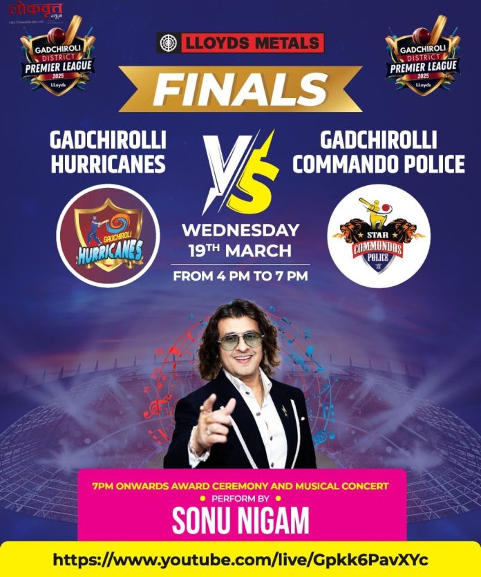 गडचिरोली, दि. १८ : गडचिरोली जिल्हा प्रीमियर लीगचा रोमांचक अंतिम सामना, त्यानंतर पुरस्कार समारंभ आणि सुप्रसिद्ध गायक सोनू निगम यांच्या ऐतिहासिक संगीत मैफिलीसह एक अभूतपूर्व क्रीडा आणि मनोरंजन पर्व उद्या १९ मार्च २०२५ रोजी MIDC मैदान, गडचिरोली येथे साकार होणार आहे. या कार्यक्रमाला तब्बल जवळपास २०,००० प्रेक्षक उपस्थित राहण्याची शक्यता वर्तवण्यात येत असून आयोजकांकडून तशी सोय उपलब्ध करण्यात आली आहे.
