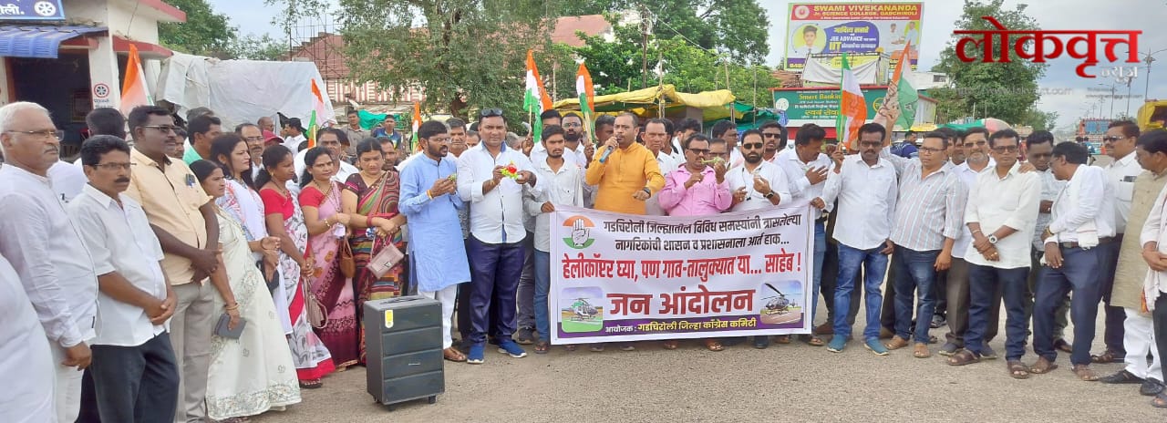 गडचिरोली २६ जून :- गडचिरोली जिल्ह्याचे पालकमंत्री आणि राज्याचे मुख्यमंत्री देवेंद्र फडणवीस यांच्या केवळ हेलिकॉप्टरमधून कार्यक्रमांना हजेरी लावण्याच्या भूमिकेवर काँग्रेसने आज चोख टोला लगावला. जिल्हा काँग्रेसच्या नेतृत्वाखाली “हेलिकॉप्टर घ्या, पण गावात या, साहेब!” या घोषवाक्यांसह, प्रशासनाच्या उदासीनतेविरोधात जिल्हाभरात एक आगळंवेगळं आंदोलन करण्यात आलं.