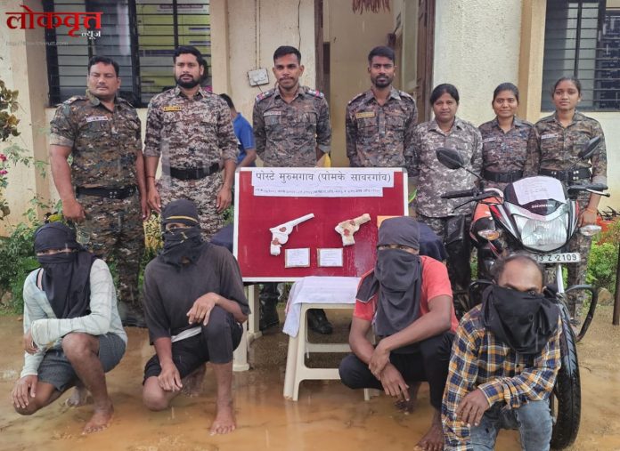 गडचिरोली, दि. २४ जुलै :- सावरगाव-मुरुमगाव मार्गावर ट्रक चालकाला बंदुकीचा धाक दाखवत जबरी चोरी करणाऱ्या चौघा आरोपींना गडचिरोली पोलिसांनी केवळ एका दिवसात अटक केली. आरोपींकडून दोन देशी बनावटीच्या बंदुका, ११ जिवंत काडतुसे, मोबाईल फोन व गुन्ह्यात वापरलेली मोटारसायकल जप्त करण्यात आली आहे.