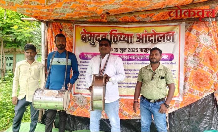 गडचिरोली, दि. २९ जुलै :- वडसा वन विभागातील भ्रष्टाचार, निष्क्रियता आणि कंपन्यांना पाठबळ देणाऱ्या अधिकाऱ्यांविरोधात गेल्या चाळीस दिवसांपासून चालू असलेल्या बेमुदत ठिय्या आंदोलनाला आज अधिक तीव्र स्वरूप प्राप्त झाले. मुख्य वनसंरक्षक कार्यालयासमोर आंदोलनकर्त्यांनी आज ढोल वाजवत ‘ढोल बजाओ आंदोलन’ छेडले आणि झोपेत असलेल्या प्रशासनाला जागे करण्याचा इशारा दिला.