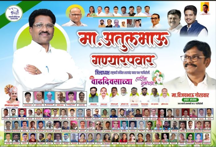 गडचिरोली मा. अतुलभाऊ गण्यारपवार जिल्हाध्यक्ष राष्ट्रवादी काँग्रेस शरदचंद्र पवार पक्ष गडचिरोली यांना वाढदिवसाच्या हार्दिक शुभेच्छा….. By Lok वृत्त - August 31, 2025 204 Share WhatsAppFacebookTelegramTwitter मा. अतुलभाऊ गण्यारपवार जिल्हाध्यक्ष राष्ट्रवादी काँग्रेस शरदचंद्र पवार पक्ष गडचिरोली यांना वाढदिवसाच्या हार्दिक शुभेच्छा….. शुभेच्छुक:- राष्ट्रवादी काँग्रेस शरदचंद्र पवार पक्ष गडचिरोली