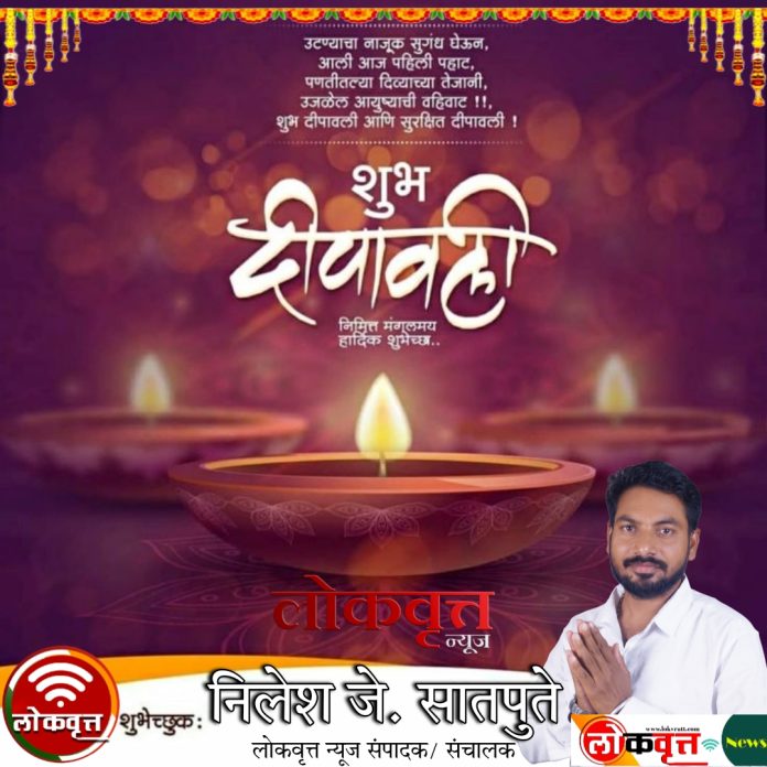 गडचिरोली समस्त जनतेला दीपावलीच्या हार्दिक शुभेच्छा! By Lok वृत्त - October 21, 2025 103 Share WhatsAppFacebookTelegramTwitter “सगळा आनंद सगळे सौख्य, सगळ्या स्वप्नांची पूर्णता, यशाची सगळी शिखरे, सगळे ऐश्वर्य, हे आपल्याला मिळू दे, ही दीपावली आपल्या आयुष्याला एक नवा उजाळा देवू दे…” दिपावलीच्या हार्दिक शुभेच्छा……! शुभेच्छुक :- निलेश सातपुते
