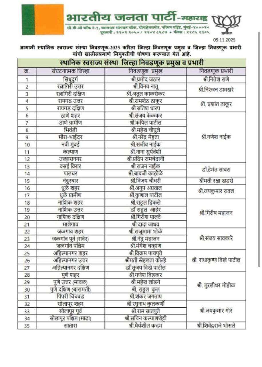 या दोन्ही नेत्यांच्या नियुक्तीमुळे भाजप कार्यकर्त्यांमध्ये नवचैतन्य निर्माण झाले असून, येणाऱ्या स्थानिक स्वराज्य निवडणुका पक्षासाठी प्रतिष्ठेच्या ठरणार आहेत.