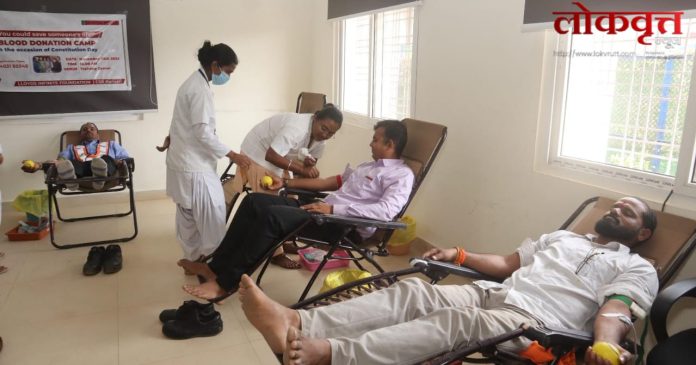चामोर्शी, दि. २६ : संविधान दिनाच्या औचित्याने लॉयड्स इन्फिनिटी फाऊंडेशनतर्फे कोनसरी येथील लॉयड्स मेटल्स परिसरात आयोजित रक्तदान शिबिराला नागरिकांचा उत्स्फूर्त प्रतिसाद लाभला. समाजसेवेला प्राधान्य देत आयोजित या शिबिरातून एकूण १०१ रक्तयुनिट्सचे संकलन करण्यात आले.