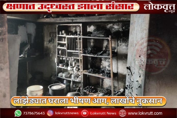 क्षणात उद्ध्वस्त झाला संसार ; लांझेड्यात घराला भीषण आग, लाखोंचे नुकसान