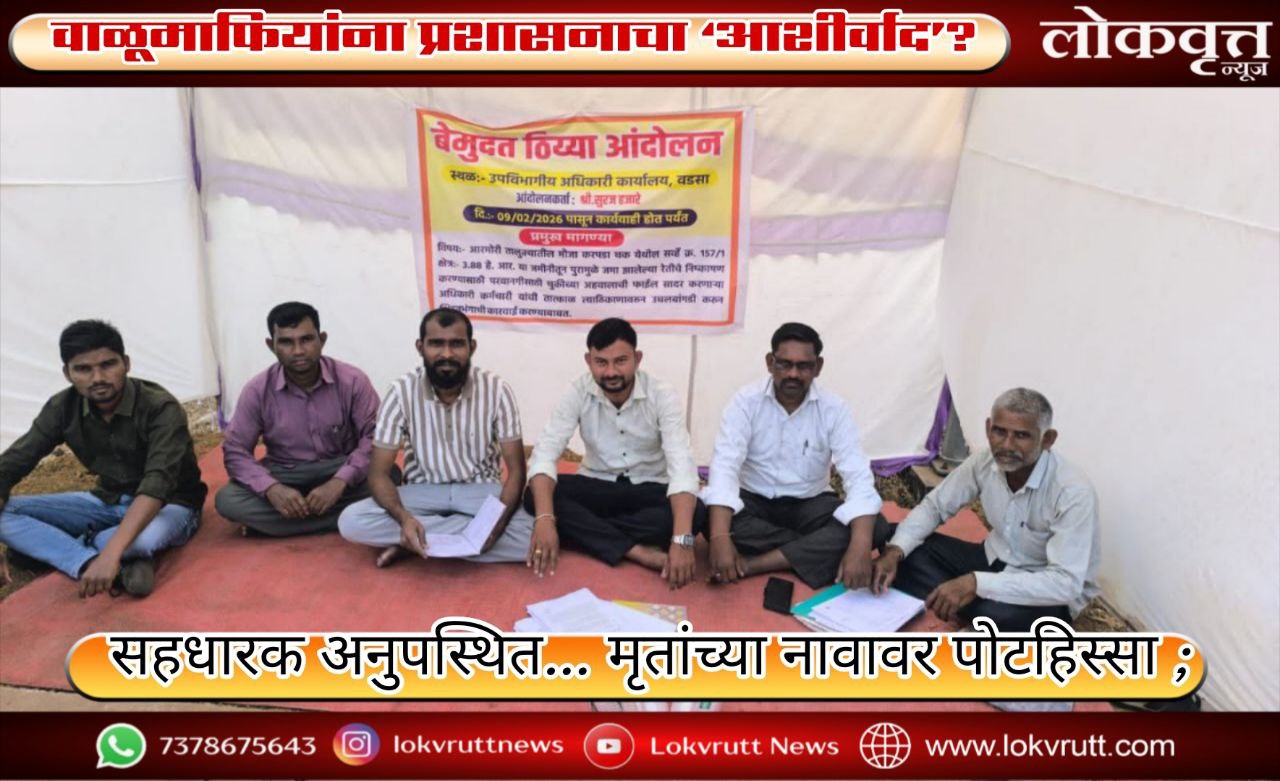 वडसा दि.१३ :- आरमोरी तालुक्यातील मौजा करपाडा चक येथील सर्व्हे क्र. १५७ प्रकरणात वाळू उत्खननासाठी नियमांची उघडपणे पायमल्ली झाल्याचा गंभीर आरोप समोर आला आहे. उपविभागीय अधिकारी, देसाईगंज यांच्या कार्यालयासमोर गेल्या चार दिवसांपासून सूरज हजारे यांचे सुरू असलेले बेमुदत ठिय्या आंदोलन आता अधिक तीव्र झाले असून, संबंधित अधिकाऱ्यांवर तात्काळ कारवाईची मागणी आंदोलनकर्त्यांनी लावून धरली आहे.