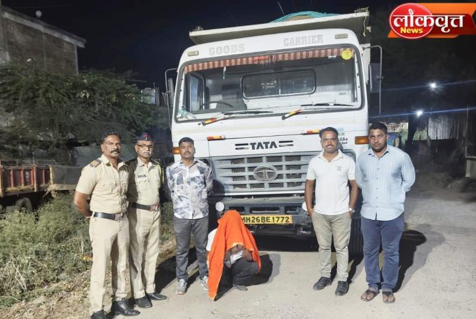 पोलिसांनी हायवा क्र. MH-26-BE-1772 थांबवून तपासणी केली असता त्यामध्ये रॉयल्टीविना लाल वाळूची अवैधरित्या वाहतूक केली जात असल्याचे आढळून आले. शासनाचा कर बुडवून विना परवाना वाळूची वाहतूक केल्याप्रकरणी चालक सदाशिव गोरठेकर (रा. सायाळ, ता. भोकर) व वाहन मालकाविरुद्ध गुन्हा दाखल करण्यात आला आहे.