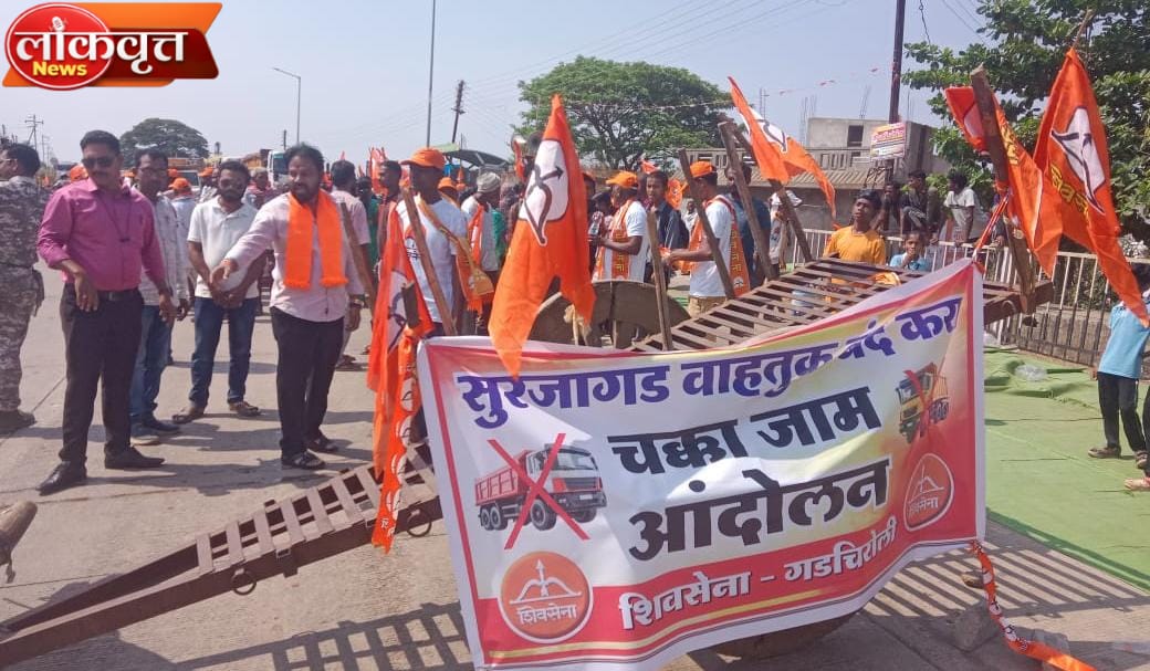गडचिरोली, :- सुरजागड परिसरातून मोठ्या प्रमाणावर सुरू असलेल्या लोहखनिज वाहतुकीविरोधात जिल्ह्यात संतापाची लाट उसळली असून “जिथे उत्खनन तिथेच उत्पादन” या तत्त्वावर गडचिरोलीतच लोहप्रक्रिया उद्योग उभारण्याची मागणी तीव्र झाली आहे. या पार्श्वभूमीवर शिवसेना (शिंदे)च्या वतीने हेमंत जंबेवार यांच्या नेतृत्वात बुधवारी गडचिरोली-चामोर्शी मार्गावरील डोंगरगाव येथे चक्काजाम आंदोलन करण्यात आले. आंदोलनादरम्यान संतप्त कार्यकर्त्यांनी लोहखनिज वाहतूक करणारे ट्रक अडवून प्रशासनाचे लक्ष वेधले.